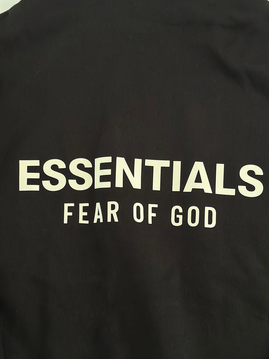 Design: Discreet “Essentials Fear of God” logo detail for a minimalist yet iconic statement