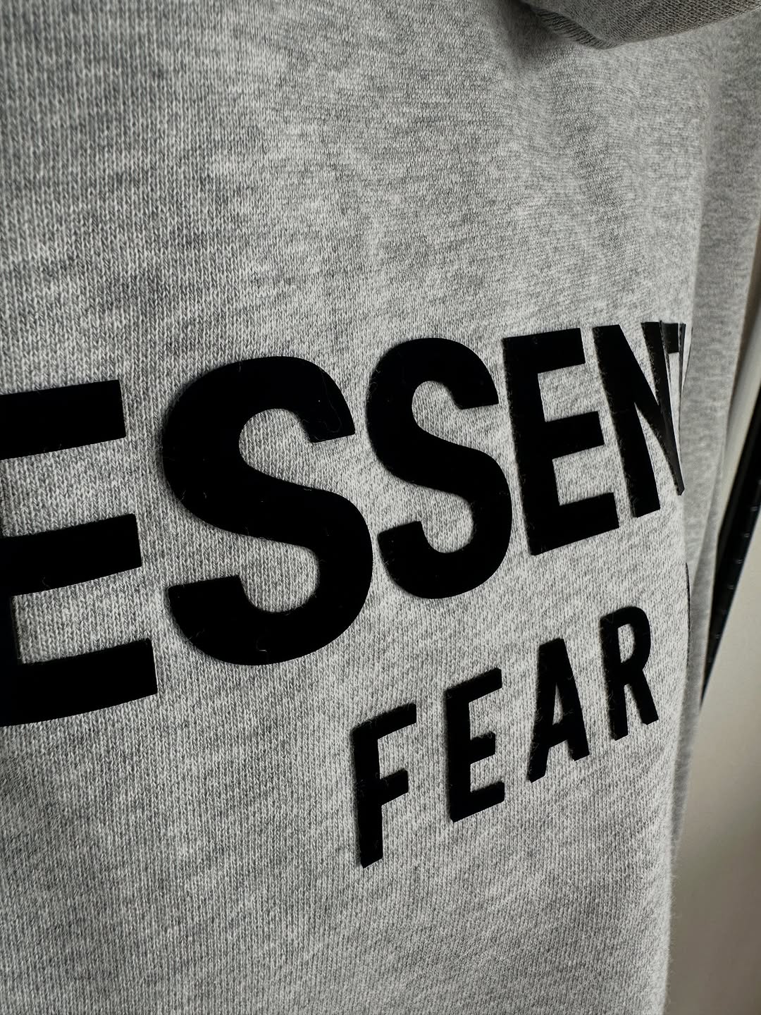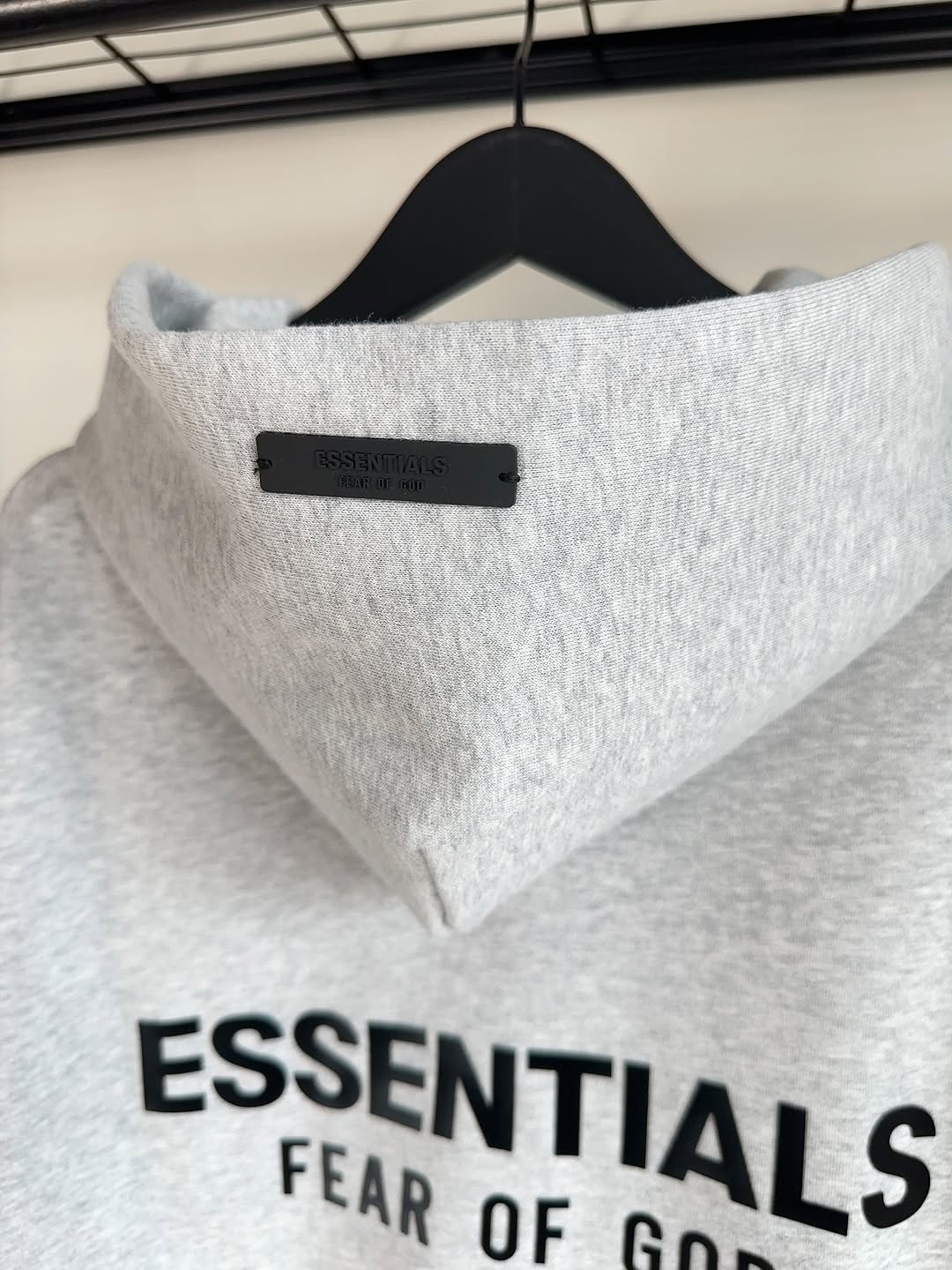 Design: Minimal “Essentials Fear of God” logo detail for a subtle yet iconic touch