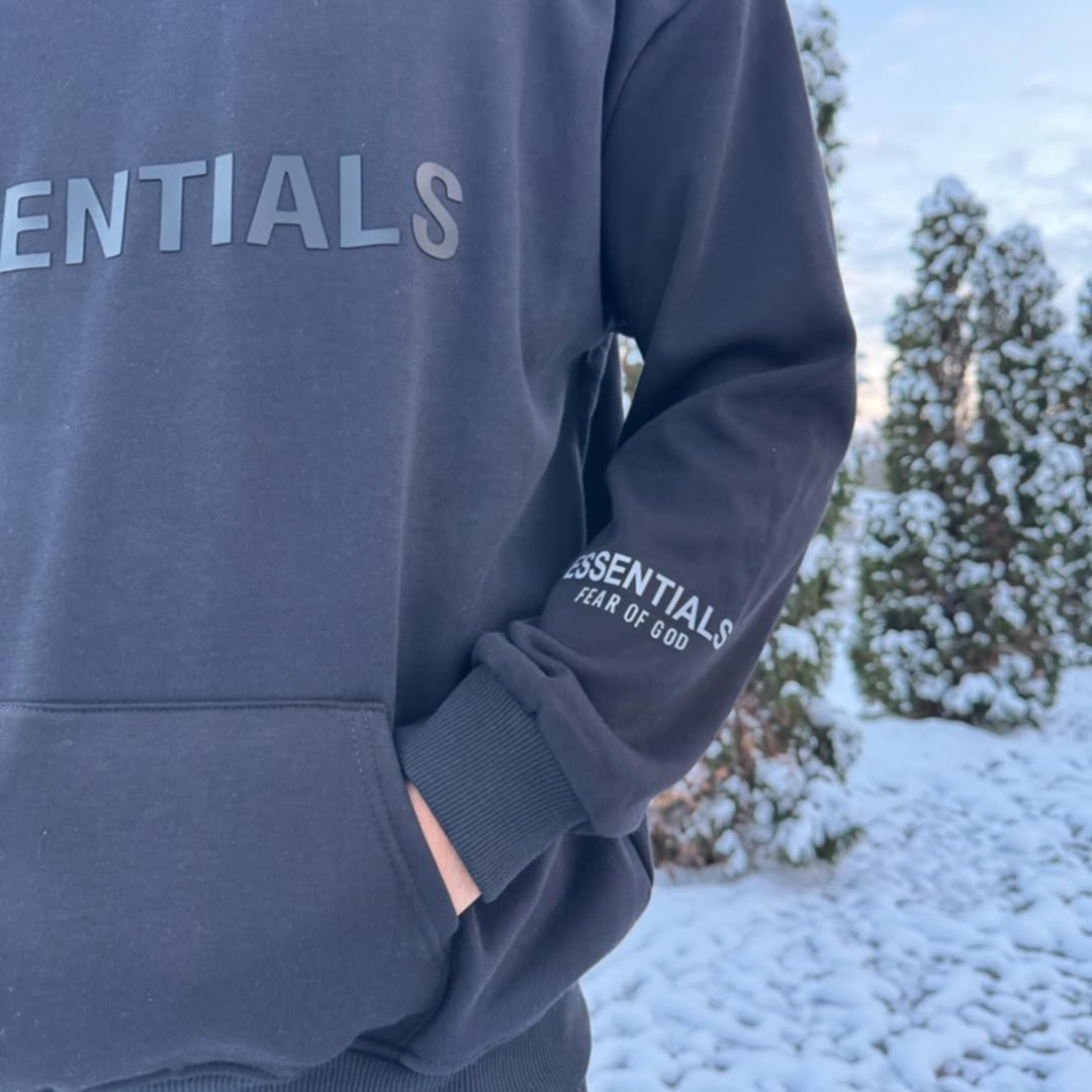 Design: Minimalist “ESSENTIALS” logo print at the front (depending on style)